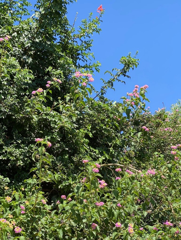 Yesterday I mentioned that I spend way too little time outdoors but here it is, late-ish morning in a suburb of Phoenix, Arizona and I’m sitting out on the patio with a foldable tray in front of me and my keyboard on top. With this position, I can look out just over my screen and see the lush, green, multicolored privet, a puffy-clouded sky, and I can feel the humidity. It’s 95 degrees already and we’re filling up our inflatable pool. Probably meant for kiddos but I really enjoy it. It’s one of my favorite things to just float in there and look up at the clouds slowly moving across the sky. Turning my head slightly and see the lantana flowers surrounding me. Ah, it’s so peaceful and because my ears are underwater, I just hear myself breathing, in and out, while my body float and sinks with each breath. That’s self-care, I believe, time totally for myself. Anyway, the high today is going to be 105. Sitting out here, I’m definitely started to perspire a bit. I was going to say that I don’t know if it’s that comfortable then thought, hey, I used to pay good money for a gym membership to get a sauna and now, today, I’m getting one for one of my favorite “f” words: Free!